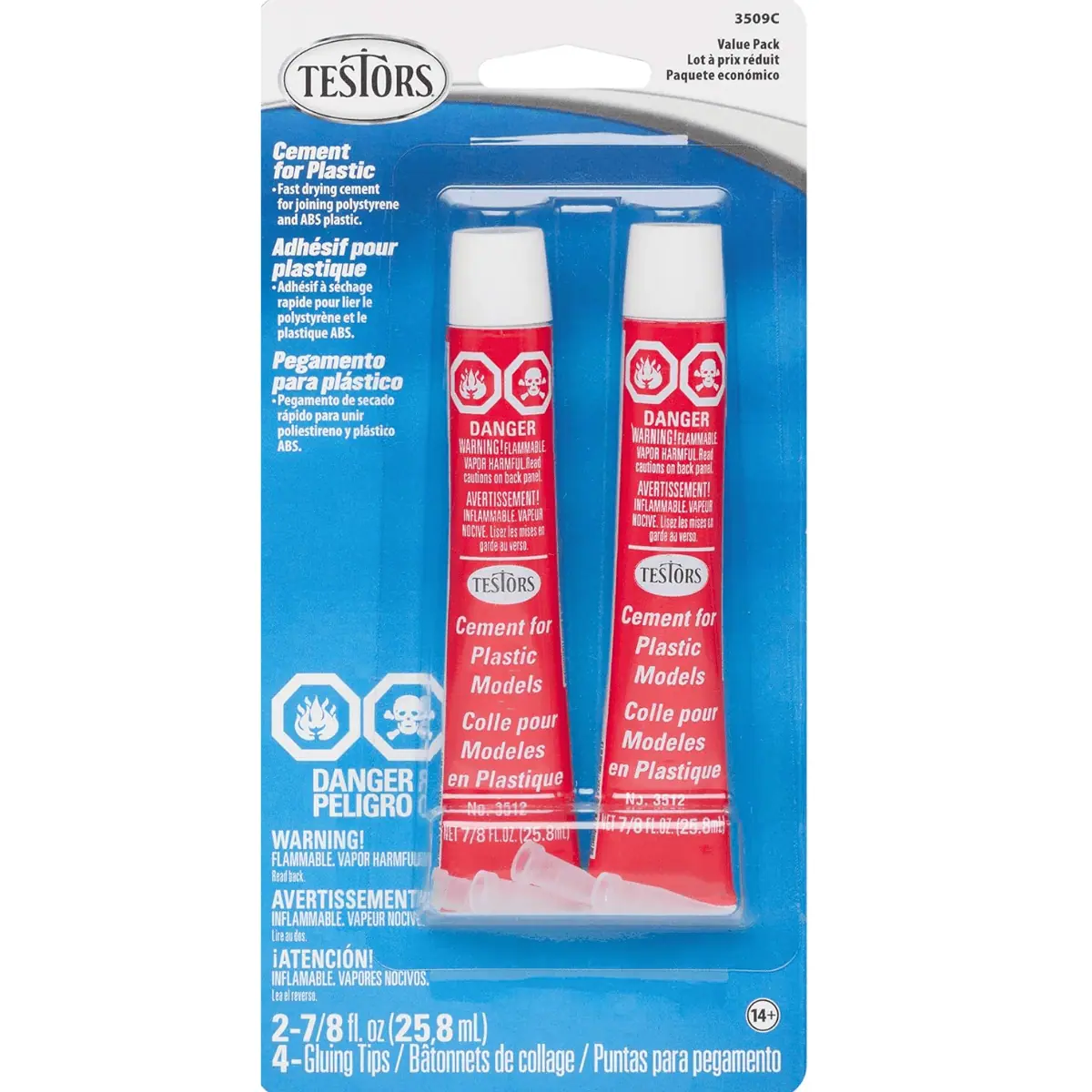 Testers is made in America, quality since 1929 Testers plastic cement is used for DIY projects, model kit building and craft projects The value pack includes two tubes of cement with 4 precision glue tips.